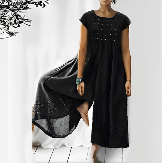 Mono de lino y algodón fruncido informal Vintage