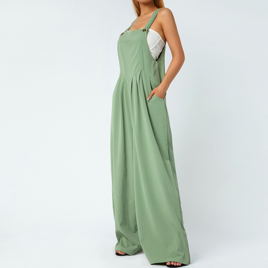 Mono de lino de algodón sin mangas y cuello en V para mujer