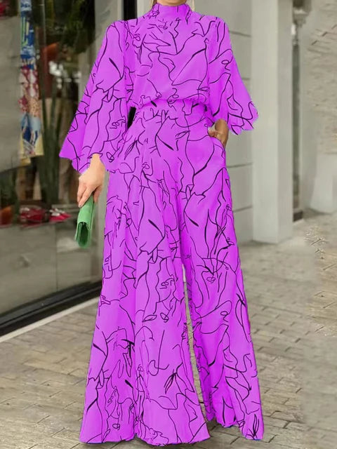 Conjuntos de pantalones y Blusa de manga larga estampada