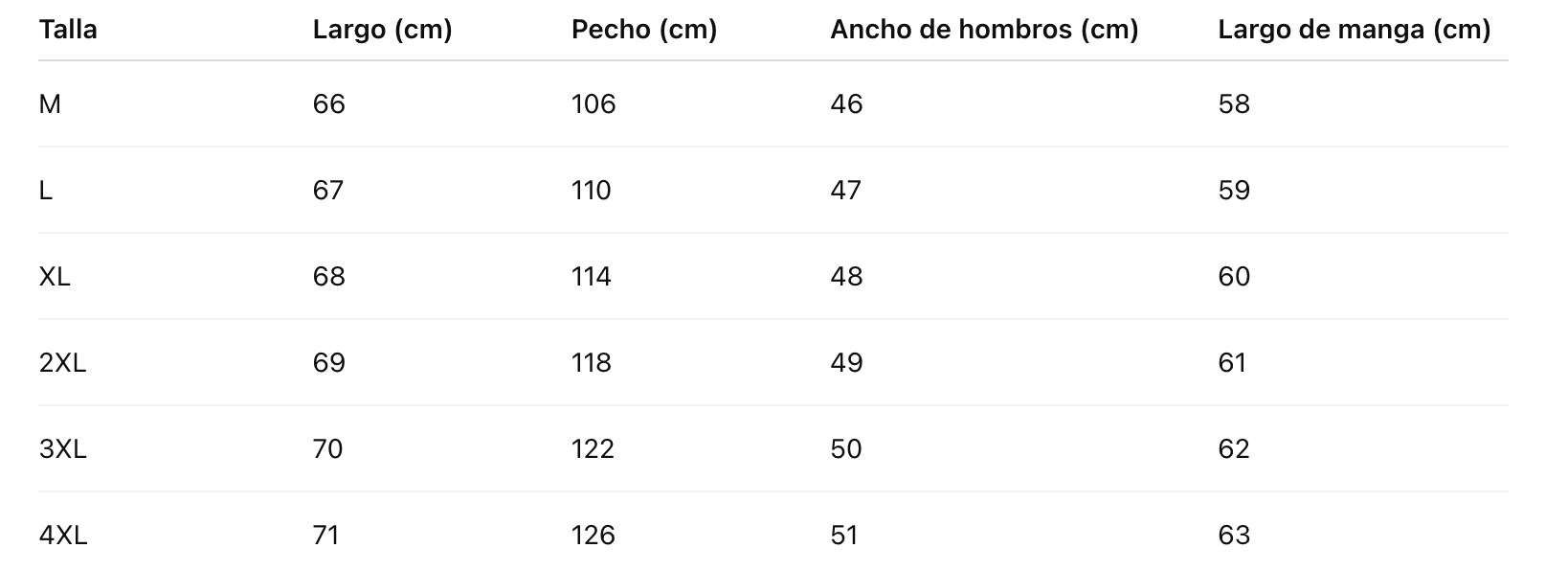 Aceptamos devoluciones y cambios dentro de un plazo de 14 días. Hacemos devoluciones si el producto tiene algún defecto. Para garantizar una experiencia de compra sin contratiempos, es importante revisar nuestras tablas de medidas antes de realizar el pedido. En caso de devolución debido a discrepancias en las medidas, los costos asociados serán responsabilidad del cliente. Consulta nuestra política de devoluciones en nuestro sitio web para obtener más información.