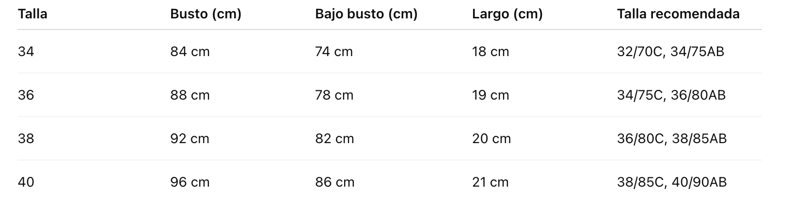 Size Bust (cm) Underbust (cm) Length (cm) Recommended size