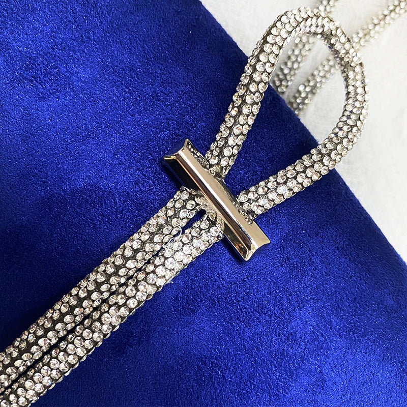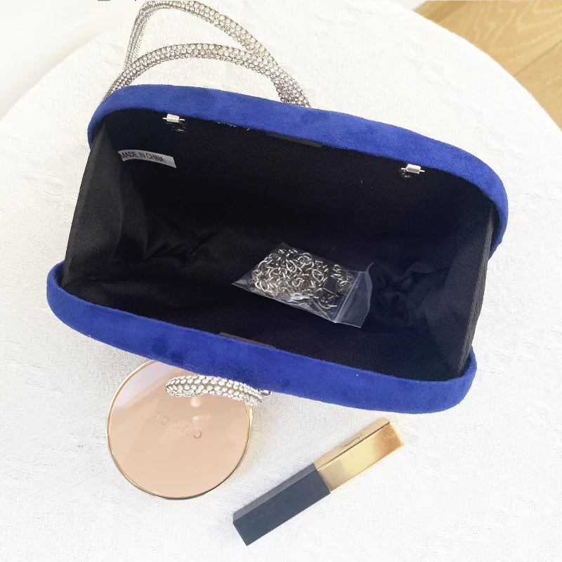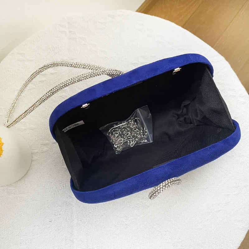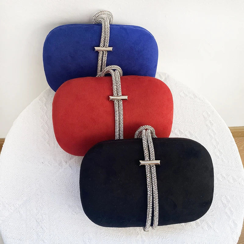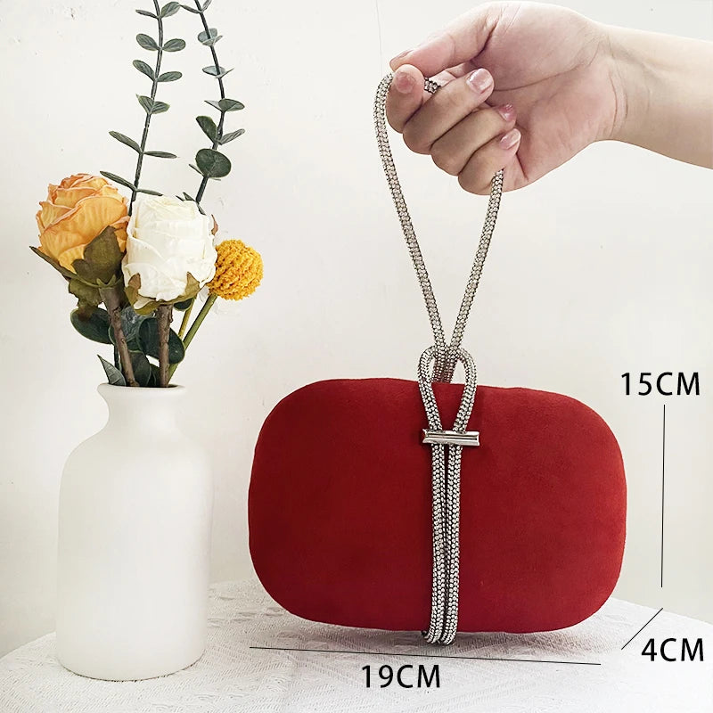This women's velvet clutch is the epitome of elegance and sophistication, ideal for weddings, formal events, and special evenings. Its compact design in a velvety finish is enhanced by a handle adorned with diamond-like rhinestones , adding a touch of luxury that elevates any look. Perfect for brides, guests, or women who want to stand out with style and distinction. ✨