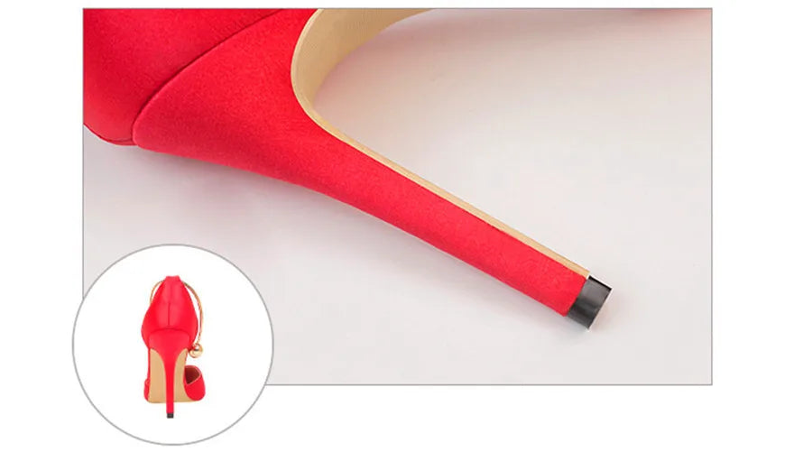 Women's high heels with a pointed toe , crafted from soft silk and embellished with a pearl-set metal buckle for a sophisticated and alluring touch. Their design flatters the figure and elevates any outfit, allowing you to express your personality through fashion with elegance and confidence at events, dinners, and special occasions.