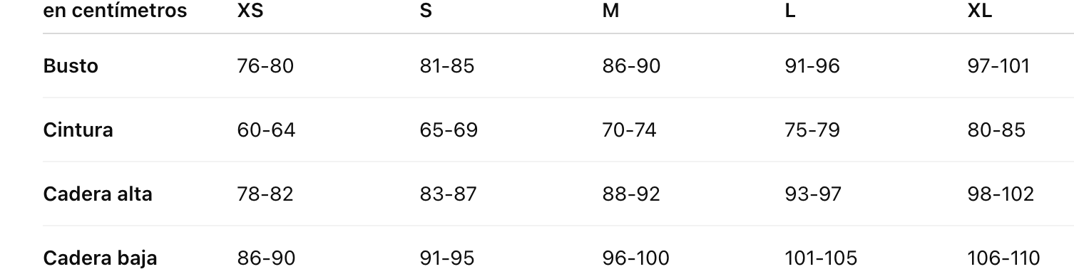 in centimeters XS S M L XL