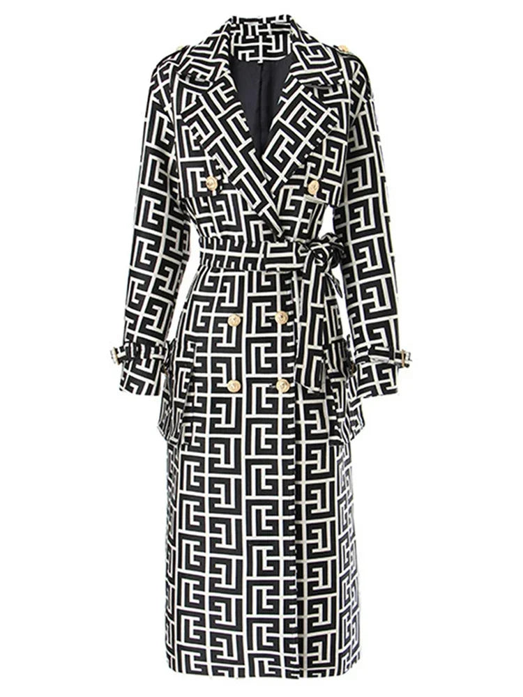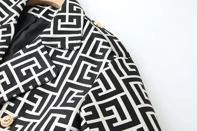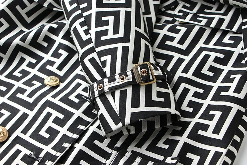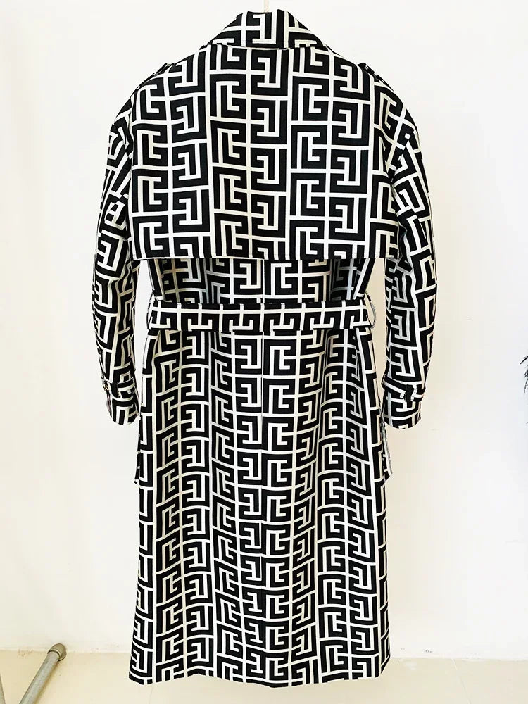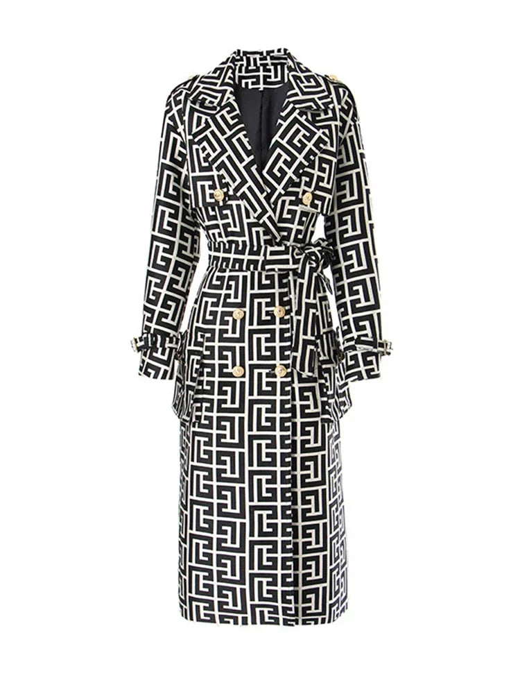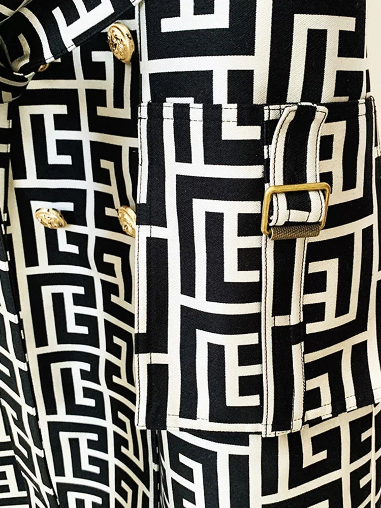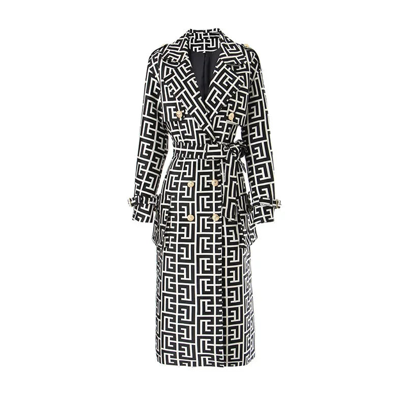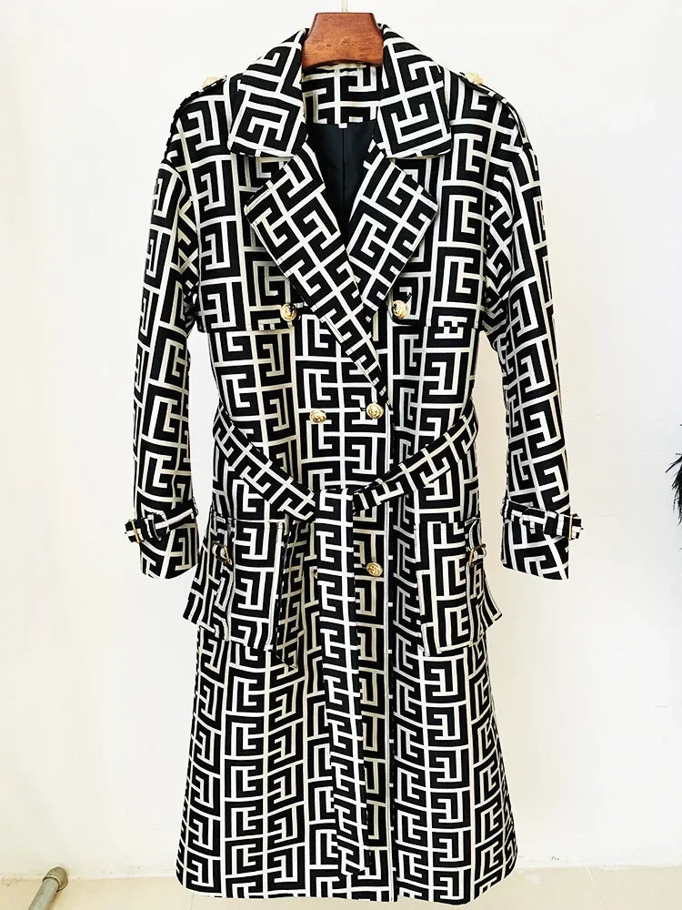 ✨ Este abrigo es una obra de arte en sí mismo: su patrón geométrico y diseño estructurado aportan un toque moderno y sofisticado. Los elegantes botones dorados y el cinturón ajustable realzan la figura, convirtiéndolo en la prenda perfecta para destacar con estilo y elegancia en cualquier ocasión. ✨