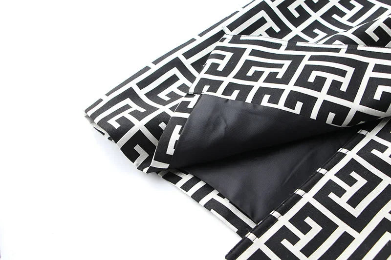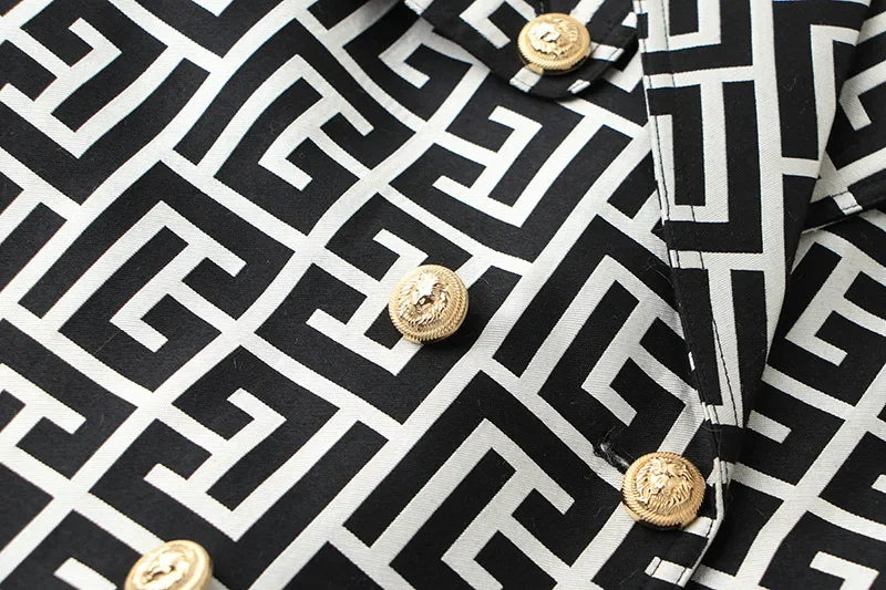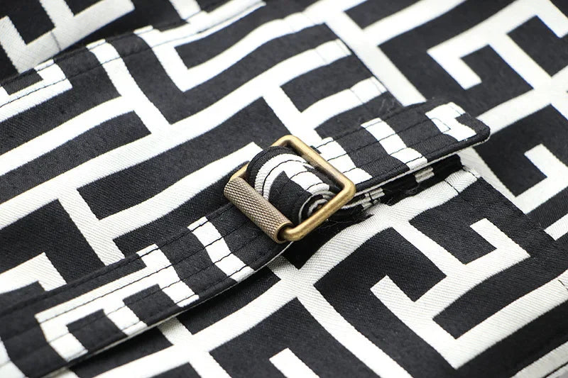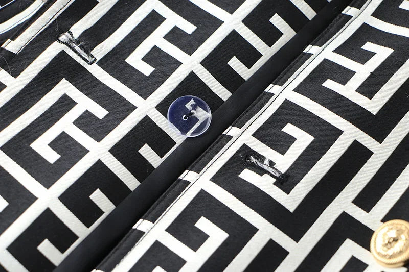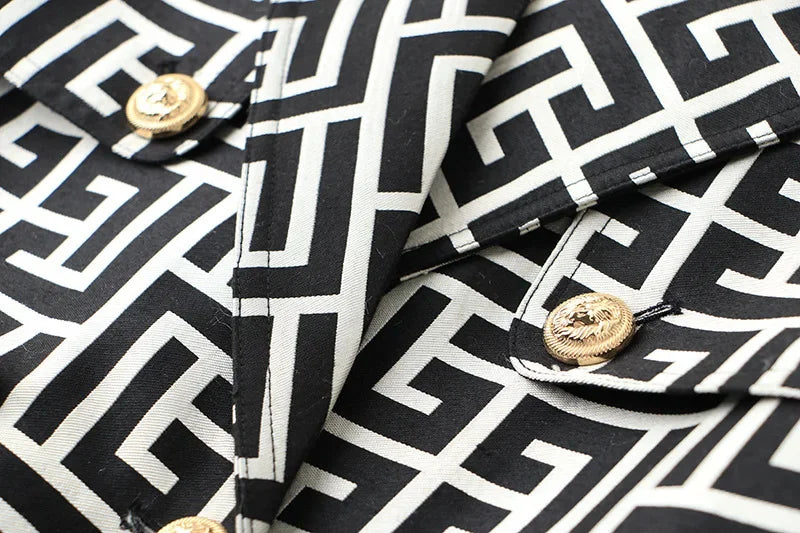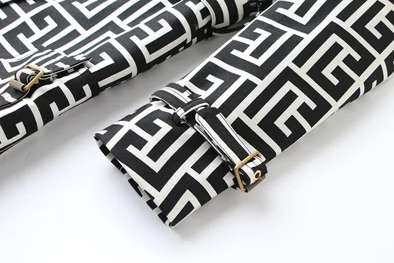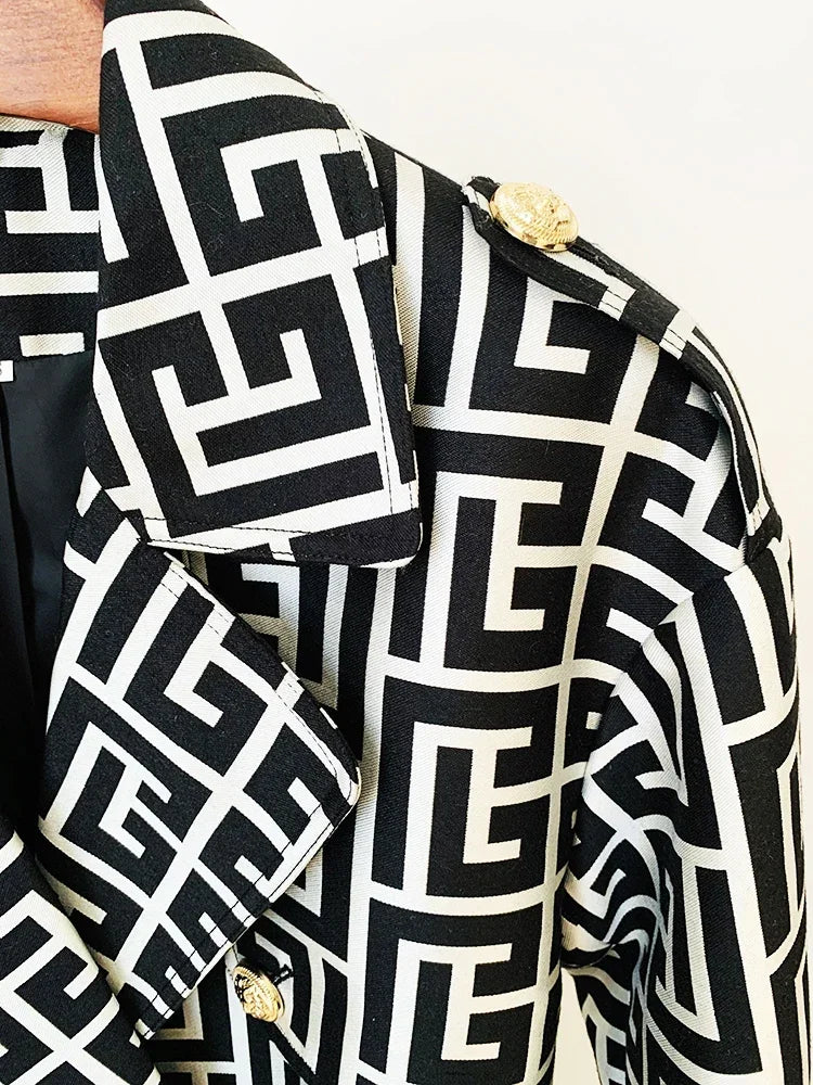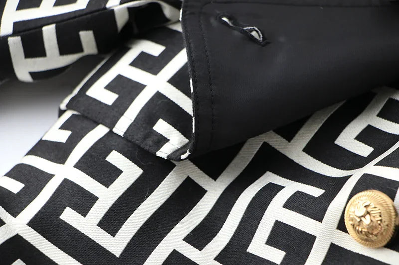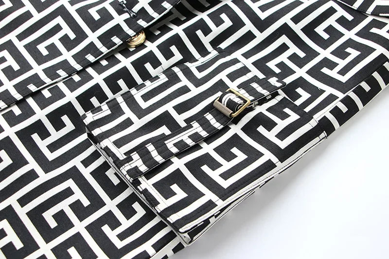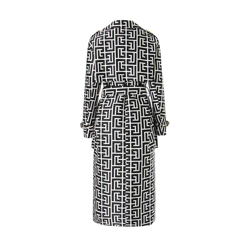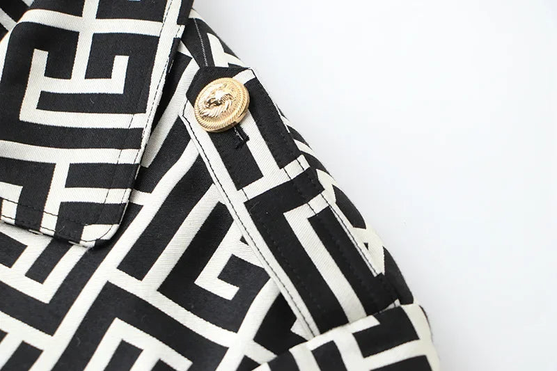 ✨ Este abrigo es una obra de arte en sí mismo: su patrón geométrico y diseño estructurado aportan un toque moderno y sofisticado. Los elegantes botones dorados y el cinturón ajustable realzan la figura, convirtiéndolo en la prenda perfecta para destacar con estilo y elegancia en cualquier ocasión. ✨