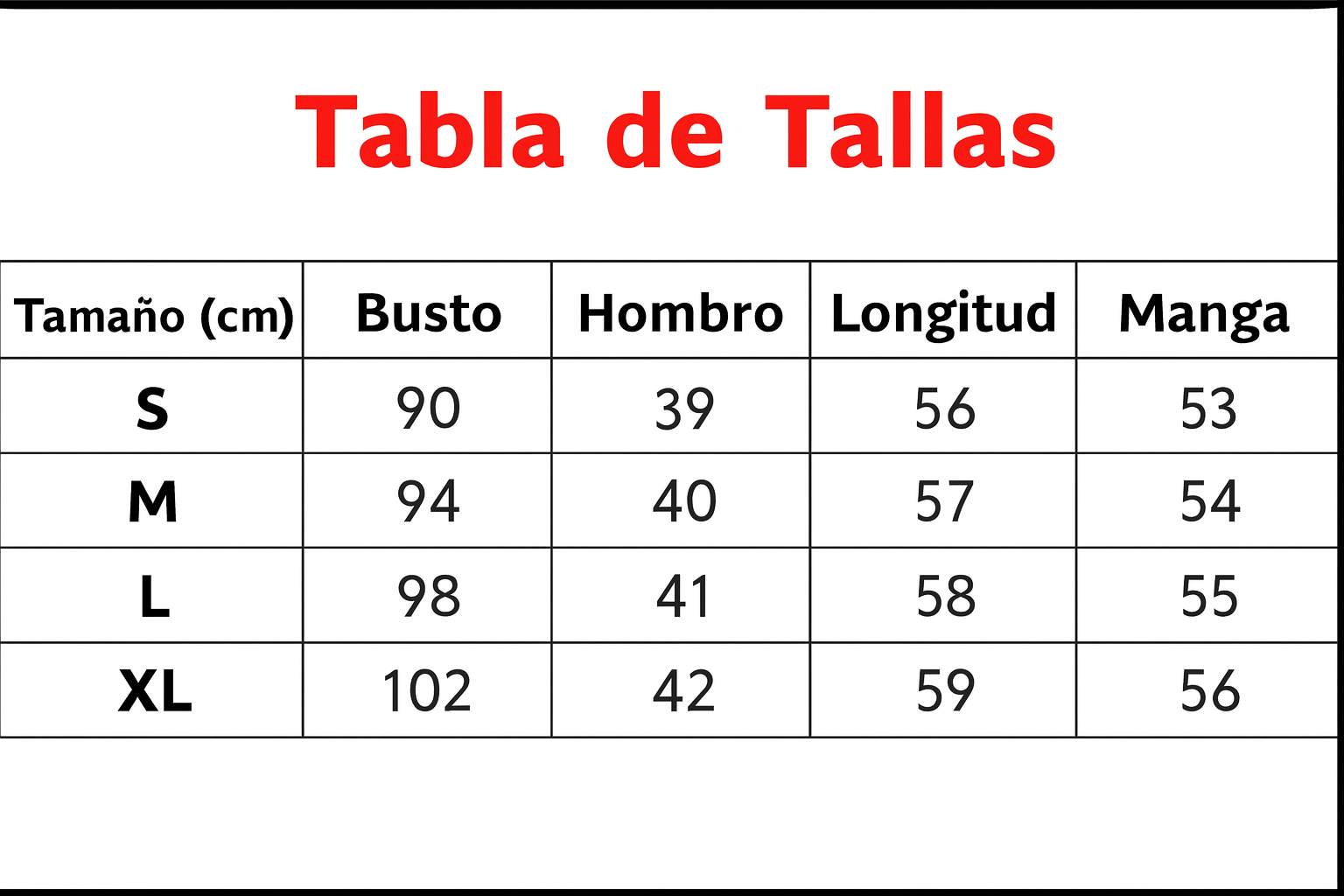 Talla Busto (cm) Hombro (cm) Longitud (cm) Manga (cm)