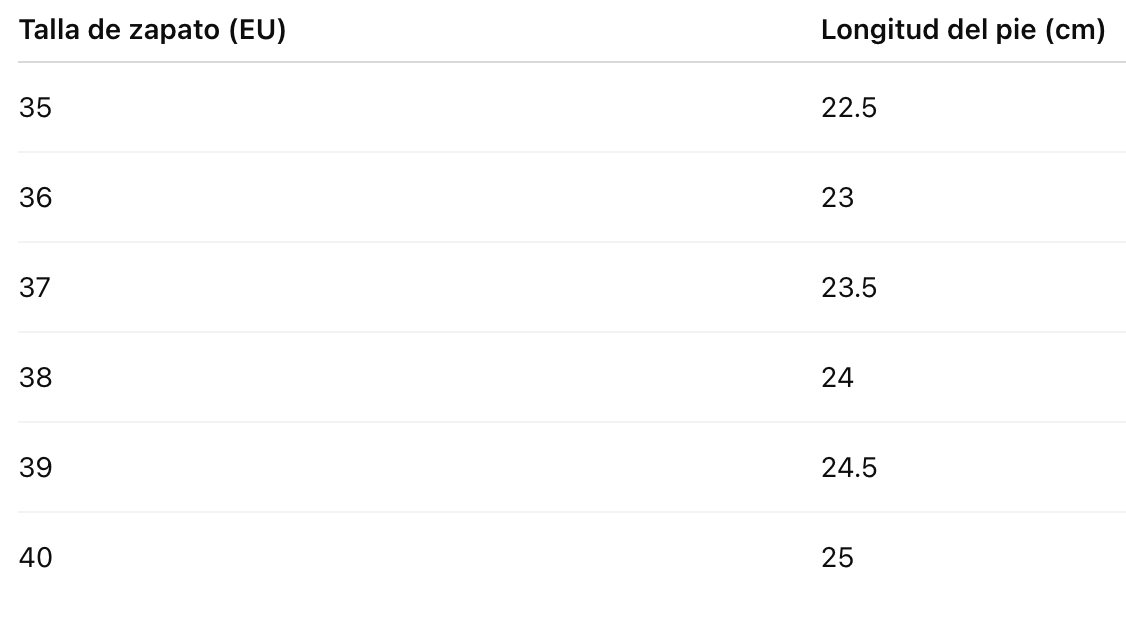 Nuestra página de "Guía de Tallas" proporciona medidas detalladas para cada producto y tambien puede encontrar medidas más especifica de cada producto en el apartado de " descrpicion caracteristicas". Siempre recomendamos escoger 1 talla más de la habitual, tanto en calzado como en prendas de vestir.