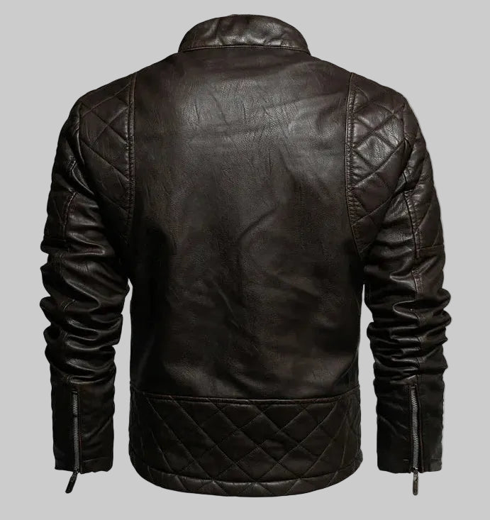 Este abrigo tipo biker para hombre combina un diseño moderno y ajustado con un interior forrado que aporta una sensación cálida y confortable en los días fríos. Su cuello alto y los detalles acolchados realzan el estilo urbano, mientras que el cierre frontal y los bolsillos funcionales lo hacen práctico para el uso diario. Es ideal para hombres que buscan una prenda versátil, con carácter y perfecta tanto para la ciudad como para salidas casuales.