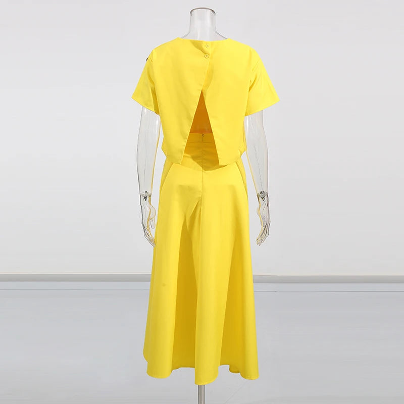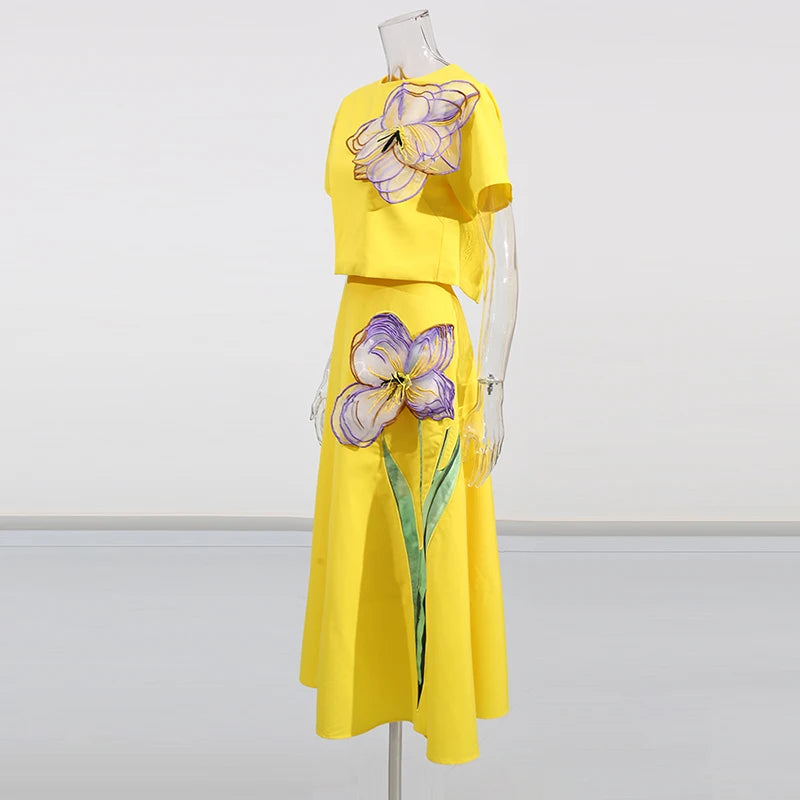 ✨ Este elegante conjunto de dos piezas, confeccionado en algodón suave y de alta calidad, combina estilo y comodidad con un toque de sofisticación. La blusa de manga corta con cuello redondo y la falda de cintura alta realzan la figura femenina, mientras los grandes estampados florales aportan un aire artístico y primaveral. Ideal para eventos, cenas o reuniones donde desees lucir fresca, elegante y única. 🌸