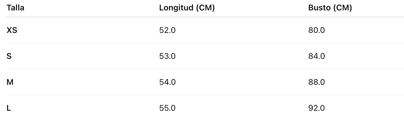 Aceptamos devoluciones y cambios dentro de un plazo de 14 días. Hacemos devoluciones si el producto tiene algún defecto. Para garantizar una experiencia de compra sin contratiempos, es importante revisar nuestras tablas de medidas antes de realizar el pedido. En caso de devolución debido a discrepancias en las medidas, los costos asociados serán responsabilidad del cliente. Consulta nuestra política de devoluciones en nuestro sitio web para obtener más información.