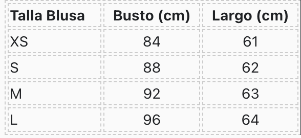 Aceptamos devoluciones y cambios dentro de un plazo de 14 días. Hacemos devoluciones si el producto tiene algún defecto. Para garantizar una experiencia de compra sin contratiempos, es importante revisar nuestras tablas de medidas antes de realizar el pedido. En caso de devolución debido a discrepancias en las medidas, los costos asociados serán responsabilidad del cliente. Consulta nuestra política de devoluciones en nuestro sitio web para obtener más información.