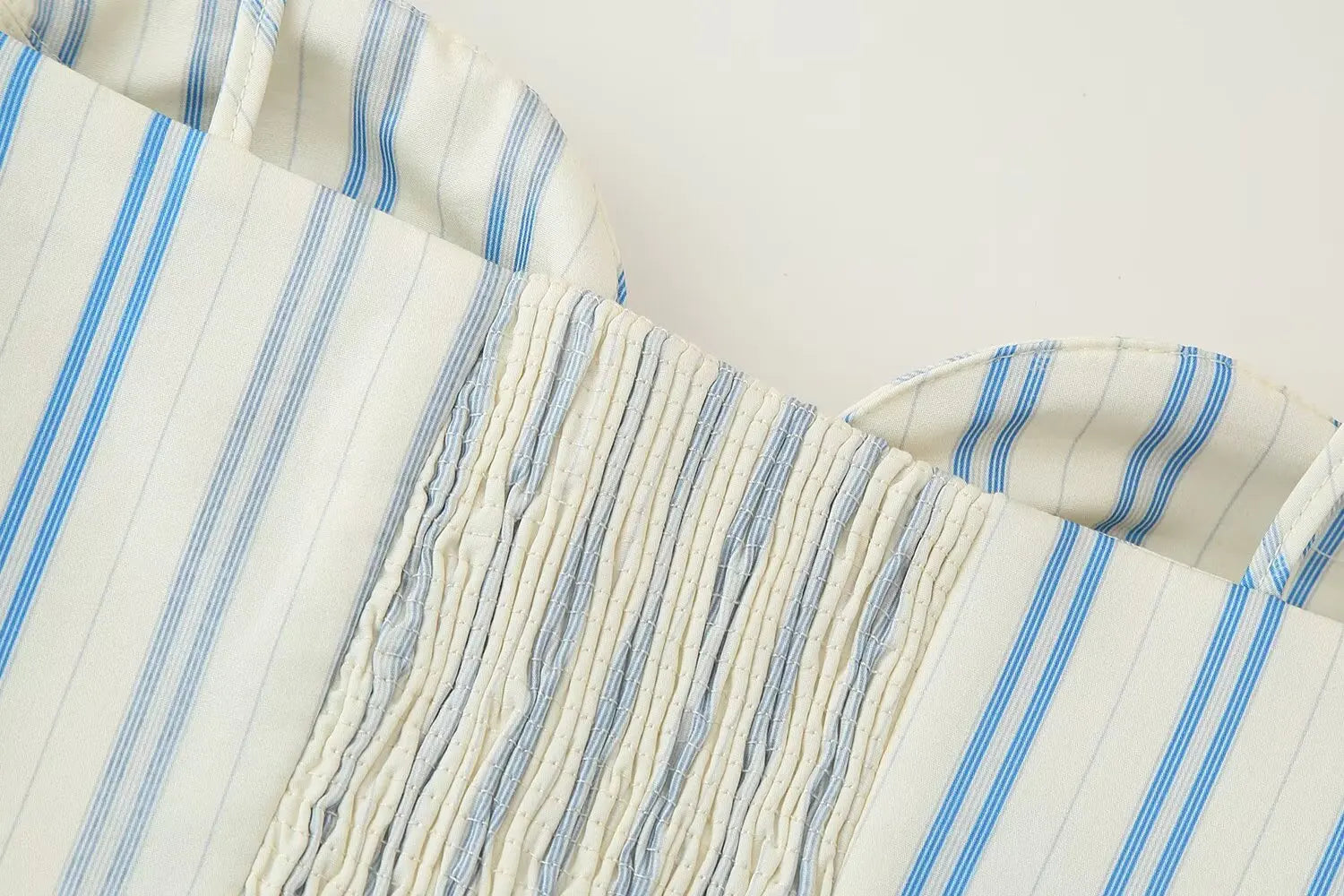 ✨ Este conjunto de dos piezas combina un corset ajustado de rayas con una falda recta y suelta, creando un equilibrio perfecto entre elegancia y comodidad. Su diseño moderno y fresco resalta la figura femenina con un toque artístico gracias al detalle verde que rompe la simetría con estilo. Ideal para días de verano, eventos informales o salidas donde quieras destacar con un look sofisticado y original. 💚