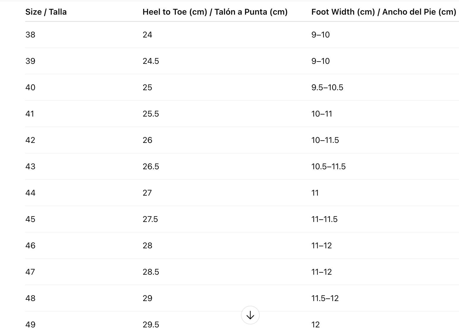 Nuestra página de "Guía de Tallas" proporciona medidas detalladas para cada producto y tambien puede encontrar medidas más especifica de cada producto en el apartado de " descrpicion caracteristicas". Siempre recomendamos escoger 1 talla más de la habitual, tanto en calzado como en prendas de vestir.