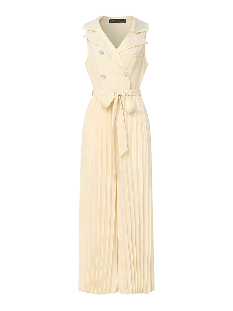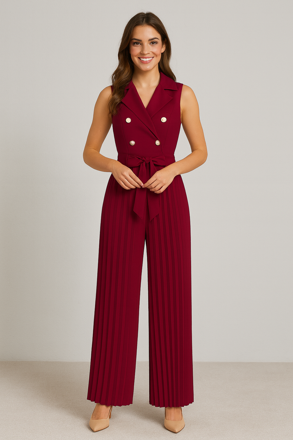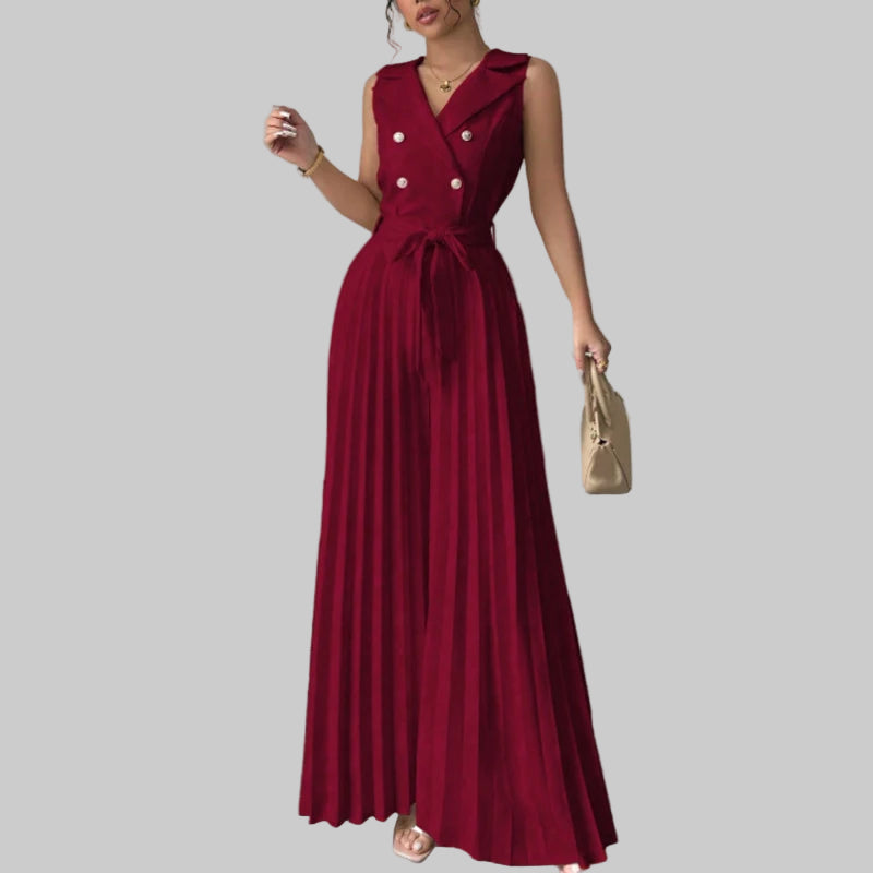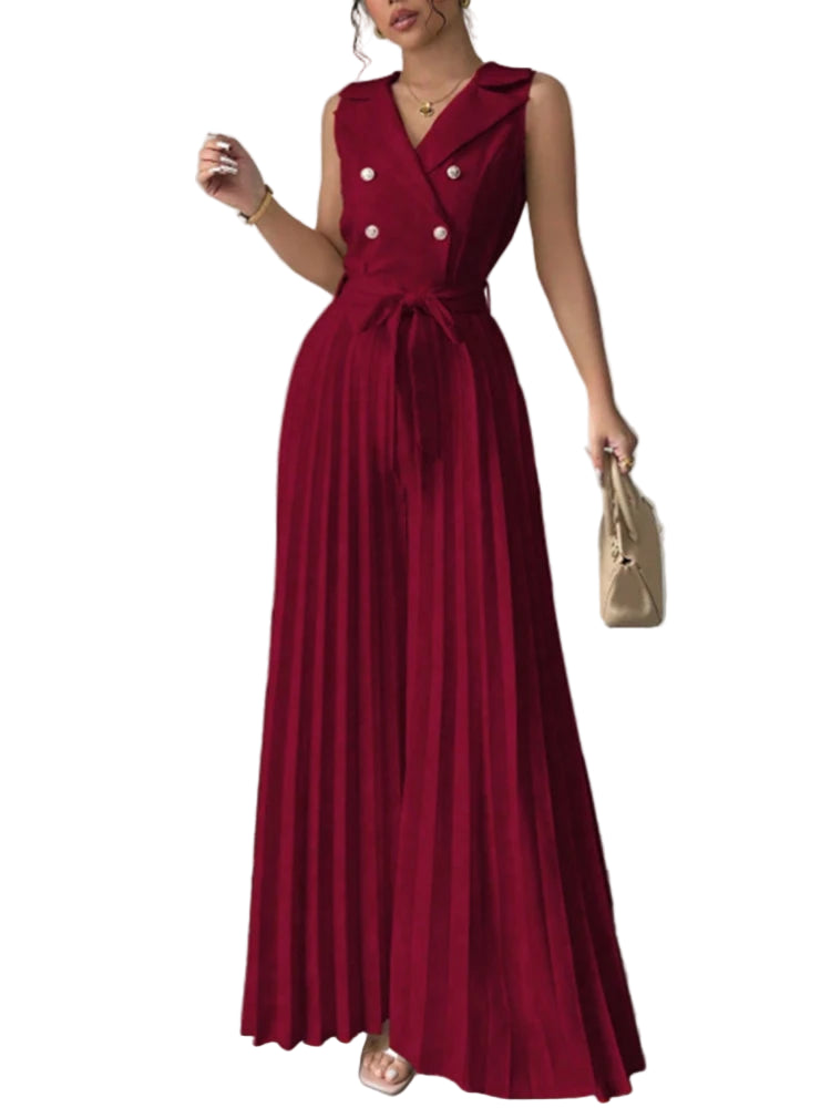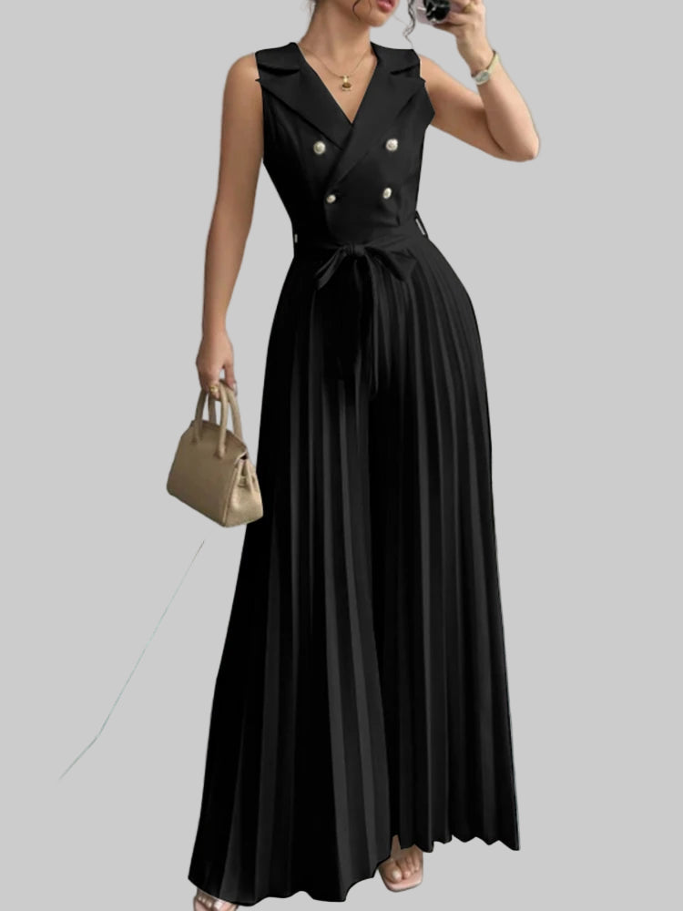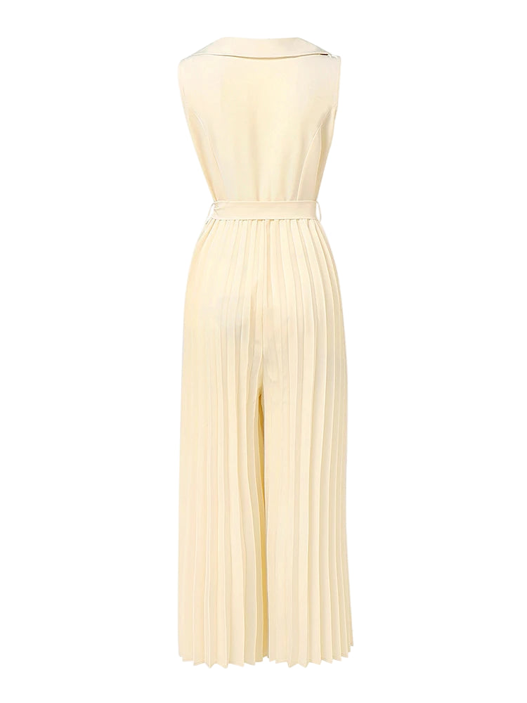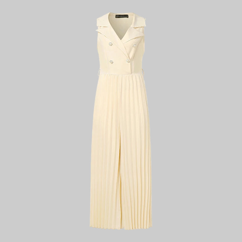 Este elegante mono de verano combina comodidad y sofisticación en una sola prenda. Su diseño sin mangas con cuello en V realza la figura, mientras que el pantalón de pierna ancha plisada ofrece frescura y libertad de movimiento, ideal para días cálidos y ocasiones especiales. Perfecto para mujeres modernas que buscan un look refinado y versátil.