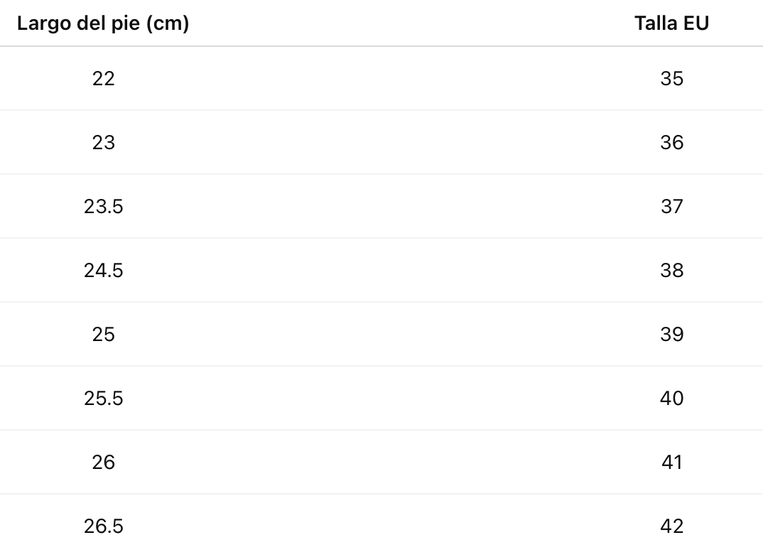 Nuestra página de "Guía de Tallas" proporciona medidas detalladas para cada producto y tambien puede encontrar medidas más especifica de cada producto en el apartado de " descrpicion caracteristicas". Siempre recomendamos escoger 1 talla más de la habitual, tanto en calzado como en prendas de vestir.