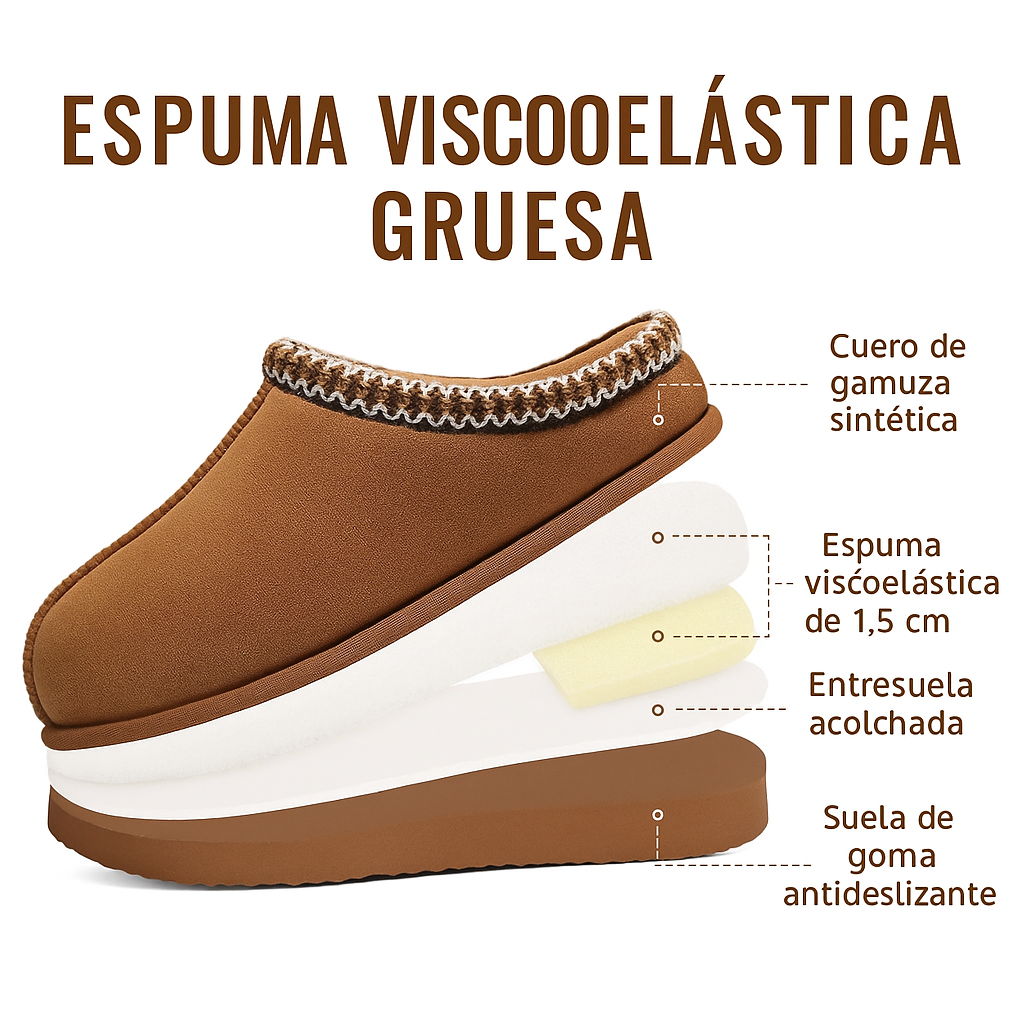 Estas pantuflas unisex con espuma viscoelástica ofrecen una sensación de suavidad y soporte inigualable. Su diseño moderno con acabado afelpado y suela antideslizante las hace perfectas tanto para interiores como exteriores. Ideales para quienes buscan mantener los pies calientes, cómodos y con estilo durante el invierno. 🏠❄️