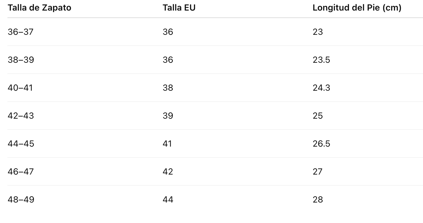 Talla de Zapato Talla EU Longitud del Pie (cm)