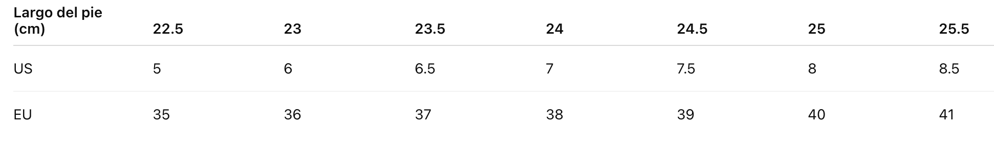 Largo del pie (cm) 22.5 23 23.5 24 24.5 25 25.5