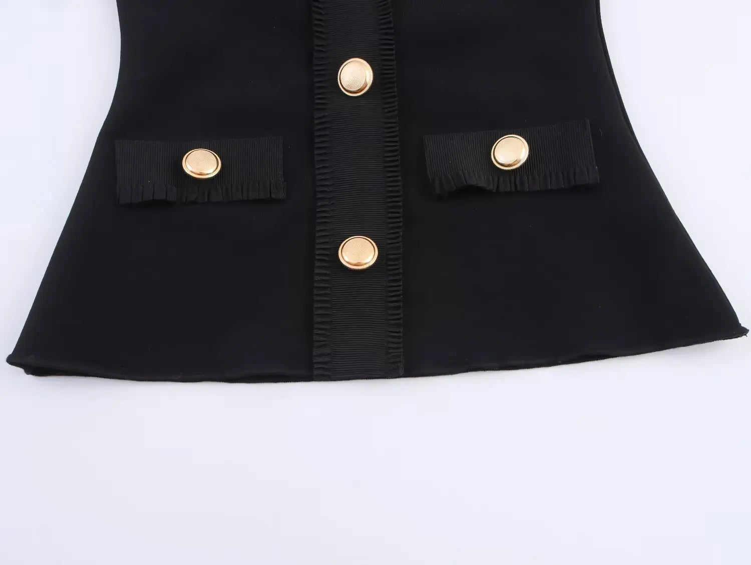 ✨ Eleva tu estilo con este conjunto de dos piezas que combina un top halter con botones dorados y un pantalón de pierna acampanada. Su diseño sofisticado realza la figura, ofreciendo un look moderno y elegante perfecto para eventos formales o salidas nocturnas. Una prenda versátil que une comodidad con un toque chic que nunca pasa desapercibido.