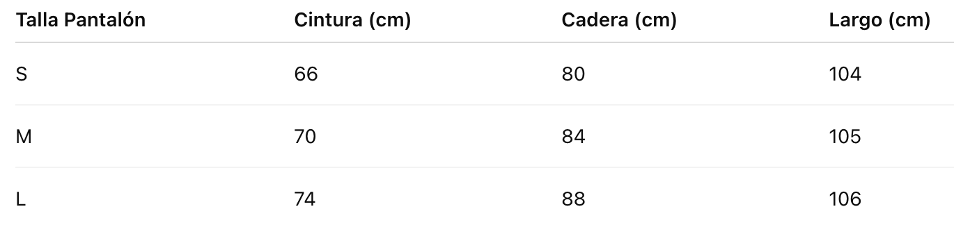Talla Pantalón Cintura (cm) Cadera (cm) Largo (cm)