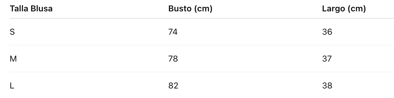 Aceptamos devoluciones y cambios dentro de un plazo de 14 días. Hacemos devoluciones si el producto tiene algún defecto. Para garantizar una experiencia de compra sin contratiempos, es importante revisar nuestras tablas de medidas antes de realizar el pedido. En caso de devolución debido a discrepancias en las medidas, los costos asociados serán responsabilidad del cliente. Consulta nuestra política de devoluciones en nuestro sitio web para obtener más información.