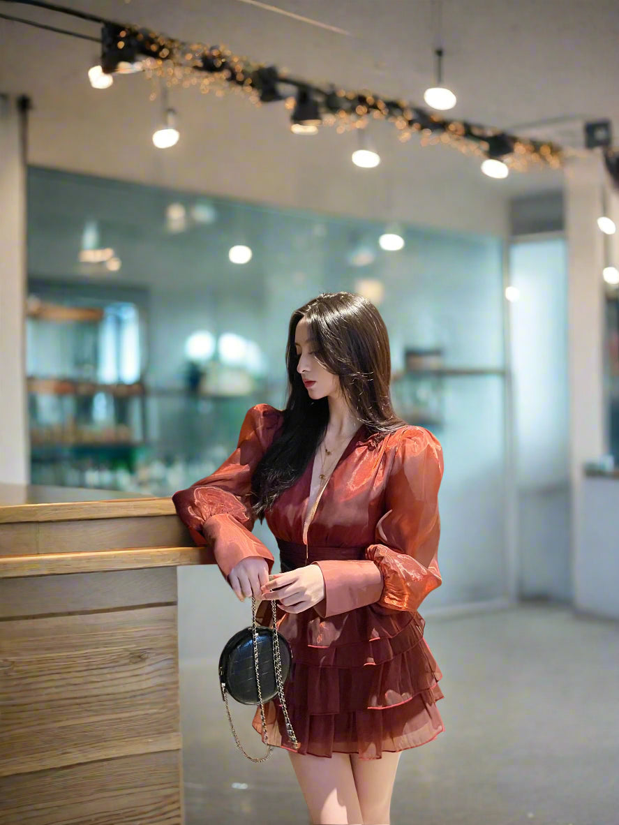 Este vestido con mangas abullonadas y escote en V es la opción perfecta para quienes buscan comodidad y estilo durante su jornada laboral. Su corte A-line con detalles fruncidos ofrece una silueta favorecedora, mientras que el tejido de alta calidad asegura comodidad todo el día. Ideal para la mujer moderna que desea un look elegante y práctico, este vestido es perfecto para combinar con tus accesorios favoritos y llevarlo tanto a la oficina como a una salida casual.