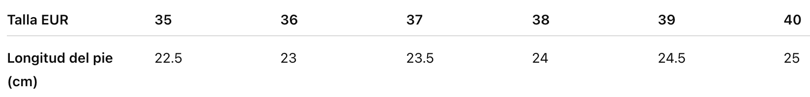 Longitud del pie (cm) 22.5 23 23.5 24 24.5 25