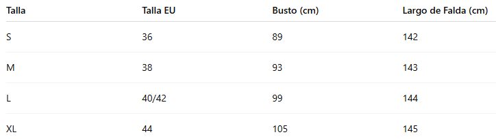 Talla Talla EU Busto (cm) Largo de Falda (cm)