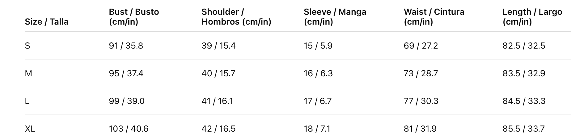 Aceptamos devoluciones y cambios dentro de un plazo de 14 días. Hacemos devoluciones si el producto tiene algún defecto. Para garantizar una experiencia de compra sin contratiempos, es importante revisar nuestras tablas de medidas antes de realizar el pedido. En caso de devolución debido a discrepancias en las medidas, los costos asociados serán responsabilidad del cliente. Consulta nuestra política de devoluciones en nuestro sitio web para obtener más información.