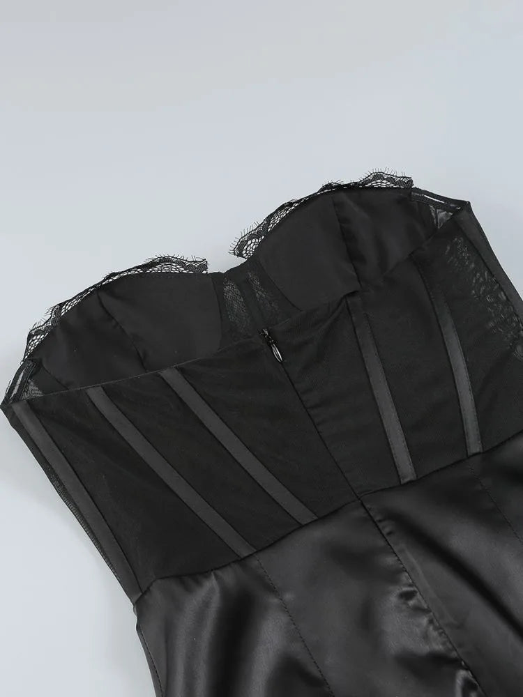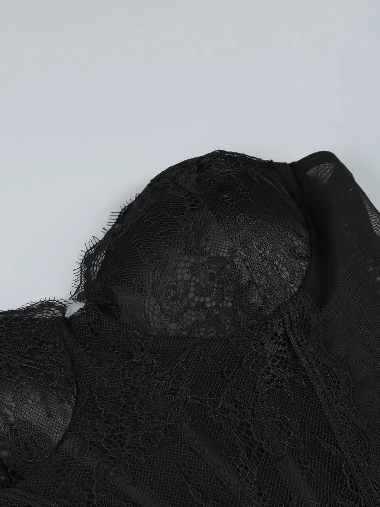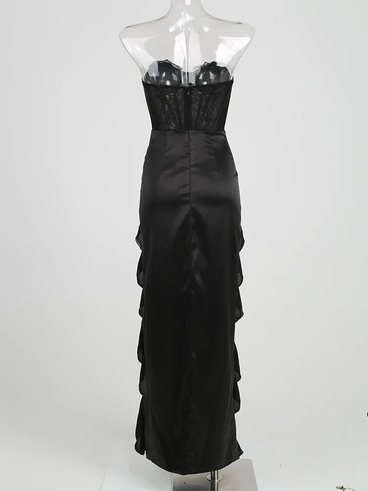 ✨ Este impresionante vestido largo combina encaje floral, transparencias y un diseño ajustado que realza cada curva con elegancia y sensualidad. Su corpiño con detalles de encaje y las aberturas laterales con volantes crean un movimiento glamuroso y único, perfecto para fiestas, eventos de noche o cualquier ocasión donde quieras ser el centro de todas las miradas. Disponible en rojo o negro, es la prenda ideal para mujeres que buscan un look audaz, sofisticado y absolutamente inolvidable.