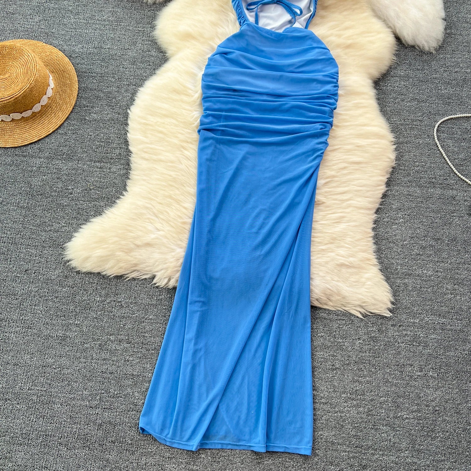 ✨💙 Este elegante vestido ajustado sin mangas combina sensualidad y estilo en una sola prenda. Su diseño fruncido realza la figura y el corte con abertura lateral añade un toque atrevido y sofisticado. Perfecto para noches especiales, fiestas o eventos donde quieras destacar con glamour y confianza. 💃✨