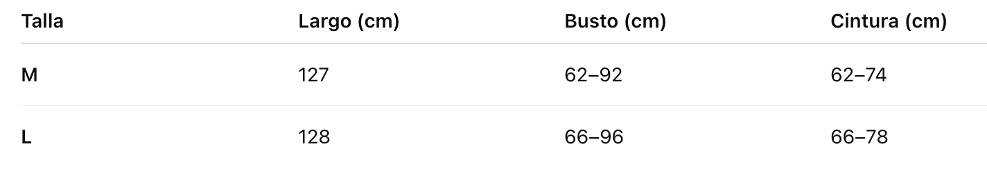 Talla Largo (cm) Busto (cm) Cintura (cm)