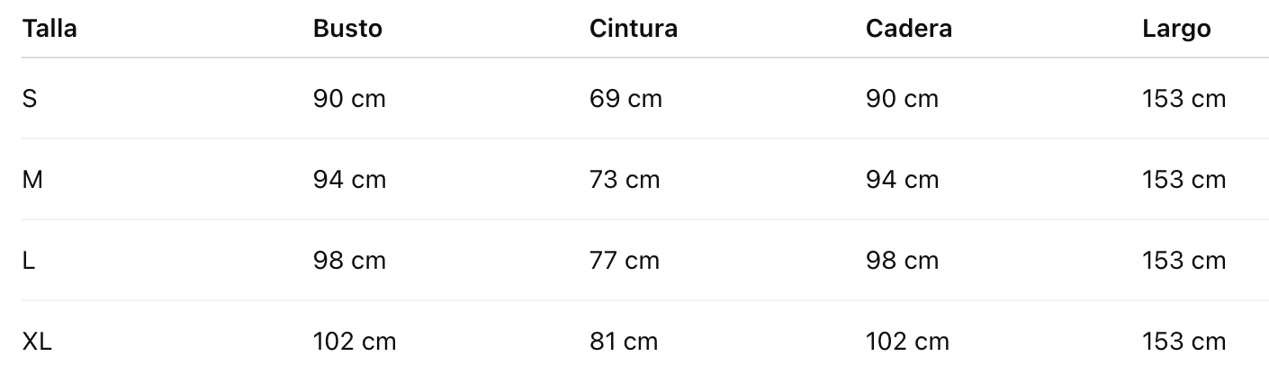 Aceptamos devoluciones y cambios dentro de un plazo de 14 días. Hacemos devoluciones si el producto tiene algún defecto. Para garantizar una experiencia de compra sin contratiempos, es importante revisar nuestras tablas de medidas antes de realizar el pedido. En caso de devolución debido a discrepancias en las medidas, los costos asociados serán responsabilidad del cliente. Consulta nuestra política de devoluciones en nuestro sitio web para obtener más información.