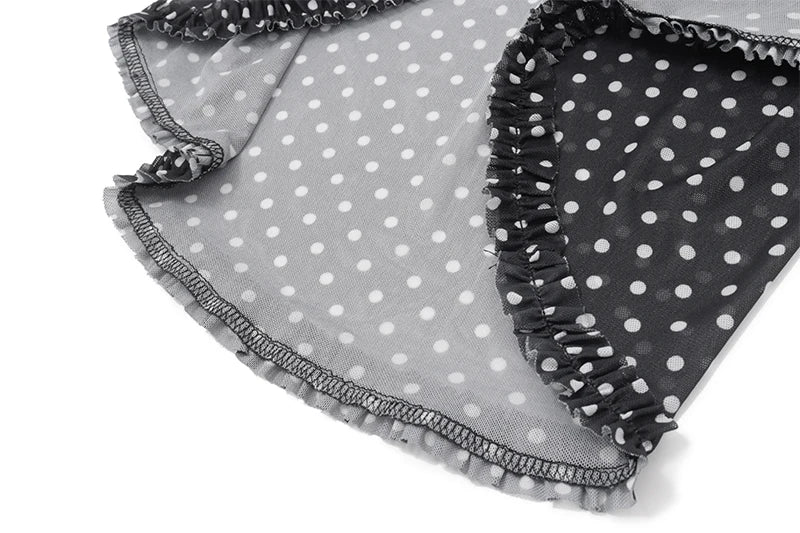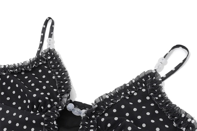 Este vestido largo con estampado de lunares combina un estilo sexy y elegante ideal para el verano. Su diseño con escote en V profundo, tirantes finos y corte ajustado en la cintura realza la silueta femenina, mientras que la falda semitransparente aporta un toque sofisticado y atrevido. Perfecto para fiestas, eventos nocturnos o para destacar con un look Y2K moderno y llamativo. ✨