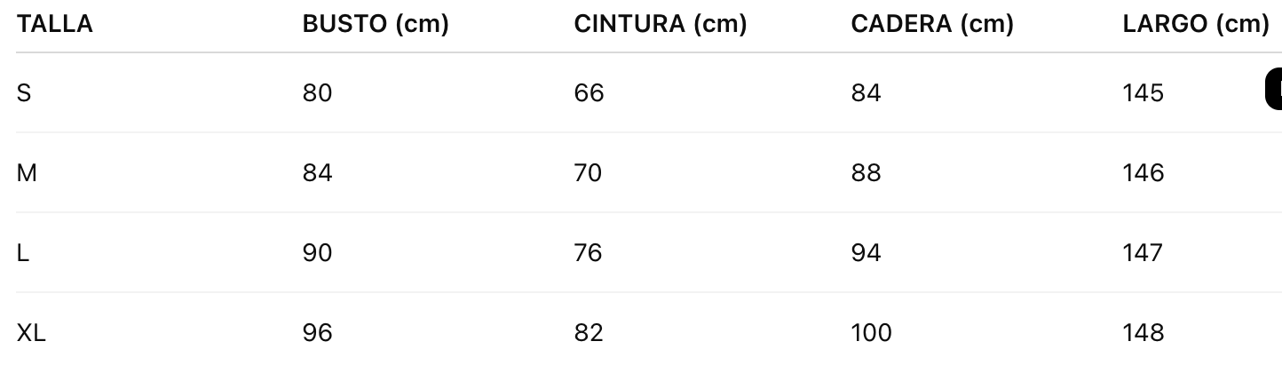TALLA BUSTO (cm) CINTURA (cm) CADERA (cm) LARGO (cm)