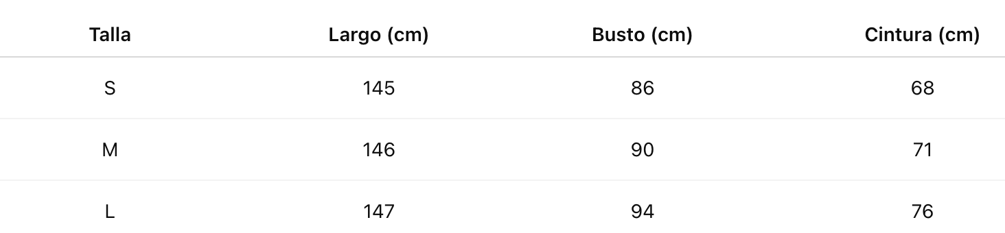 Talla Largo (cm) Busto (cm) Cintura (cm)