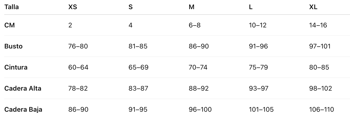Cadera Alta 78–82 83–87 88–92 93–97 98–102