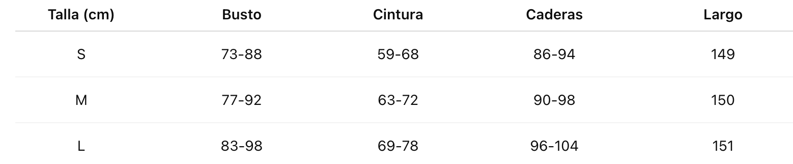 Talla (cm) Busto Cintura Caderas Largo