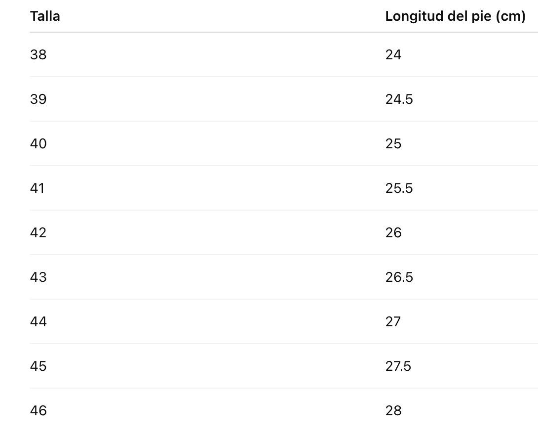 Nuestra página de "Guía de Tallas" proporciona medidas detalladas para cada producto y tambien puede encontrar medidas más especifica de cada producto en el apartado de " descrpicion caracteristicas". Siempre recomendamos escoger 1 talla más de la habitual, tanto en calzado como en prendas de vestir.