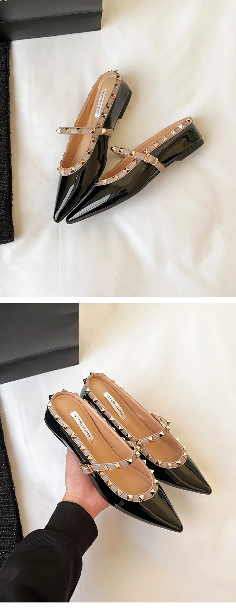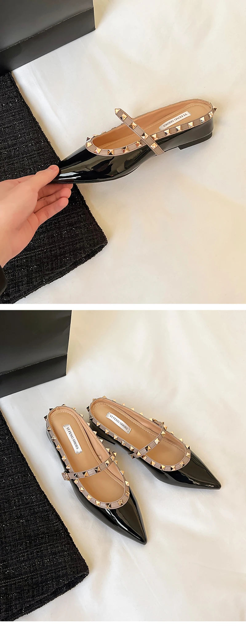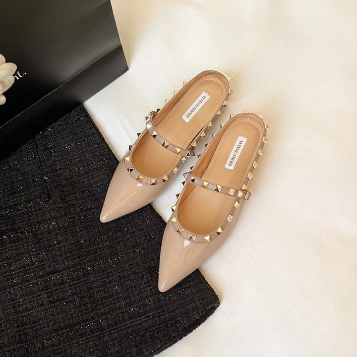 ✨ Estas mules elegantes combinan comodidad y estilo con un diseño moderno adornado con tachuelas metálicas. Su acabado brillante y su forma en punta estilizan el pie, ofreciendo un look sofisticado ideal para el día o la noche. Perfectas para mujeres que buscan un calzado versátil, chic y con un toque atrevido. ✨