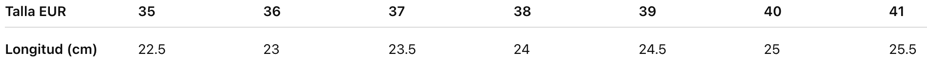 Talla EUR 35 36 37 38 39 40 41